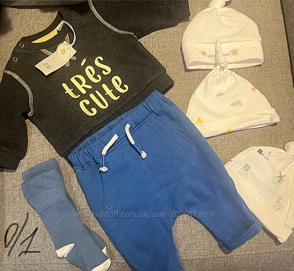 Шапки, штанишки, Боди, джинсики next 0-3-6 месяца