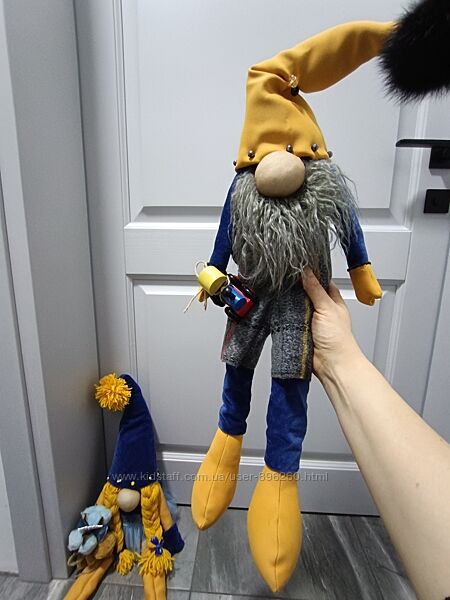 Гноми скандинавські, створені іграшки моєю мамою, висотою приблизно по 73-63 см. Нестандартні.Ціна вказана за пару. Один 420грн.Робіть свій вибір свідомо, повернення не передбачено.