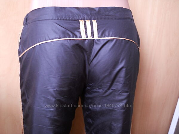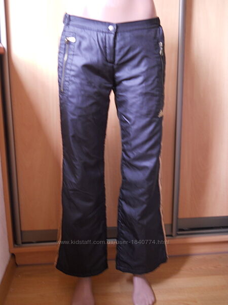 Штаны на резинке, застегиваются на кнопку и молнию. Низкая талия. Талия - 74 см, тянется до 84 см. Бедра - до 100 см (не тянется). Ширина штанины - 27 см. Посадка (мотня) - 51 см. Подходит на наш 44-46 размер.