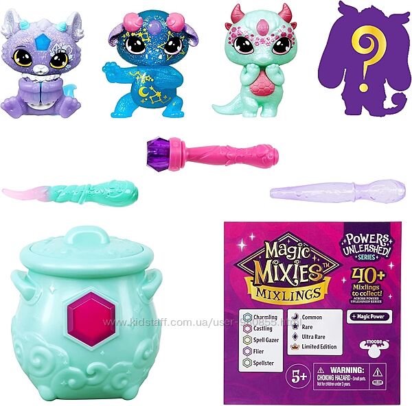 Відкрийте для себе всі нові чарівні мікси з новими магічними здібностями та новим кольором котла в серії Power Unleashed! Відчуйте СПРАВЖНЮ МАГІЮ з Magic Mixies Mixlings, милою породою Magic Mixies, які чекають, щоб ви їх створили, з справді чарівним розпакуванням! Кожне змішування має особливі здібності, які вивільняються за допомогою чарівної палички, що входить у комплект. Пустотливі та чарівні, Mixlings дуже веселі, коли ви чаклуєте та відкриваєте різні способи гри. З понад 40 мікслінгами, які можна створювати та збирати протягом серії Power Unleashed, у вас є стільки чарів і чарівних друзів, яких можна обожнювати!