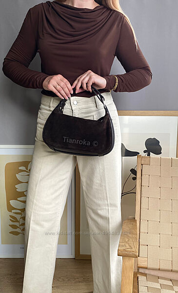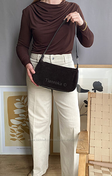 Подробное описание: Новинка. Замшева сумка багет, кросбоді з шкіряною ручкою, Італія.