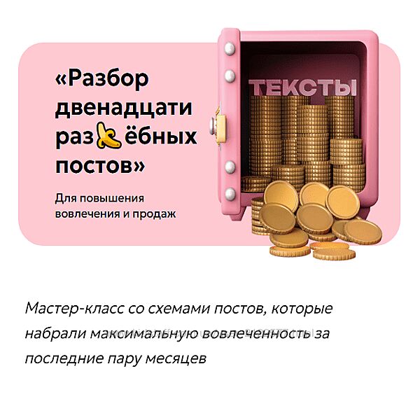 Вместе с мастер-классом вы получите конспект с разборами текстов. Чтобы не пересматривать мастер-класс, а перечитать, когда будет надо.