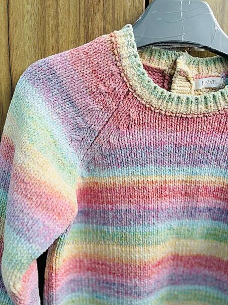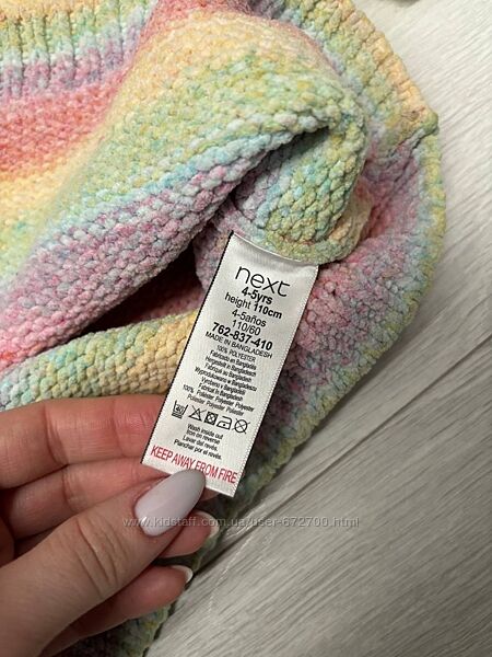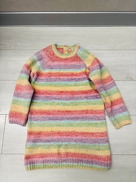 Дуже тепленька туніка чи плаття для дівчинки 4-5 років Некст Next в ідеальному стані (носили дуже мало). Дуже вдала моделька, так як дуже зручна, м´якенька і тепленька буде для дівчинки. Колір дуже ніжний, веселковий, дівчаткам дуже подобається. В живу краща, ніж на фото, так як не передає кольору. Чудово підійде в школу чи в дитячий садочок. Можна одягати як платтячко, тунічка або як світерок під лосинки чи колготи.Заміри: