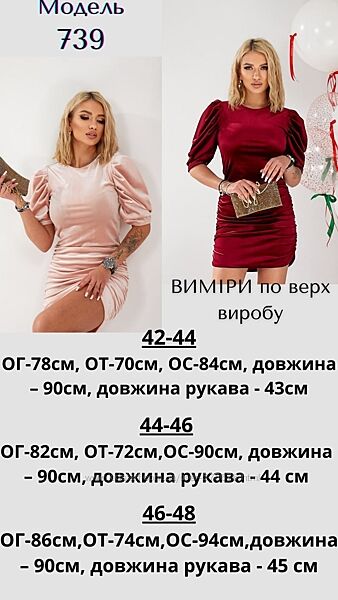 42-44: ОГ-78см, ОТ-70см, ОС-84см, довжина – 90см, довжина рукава - 43см