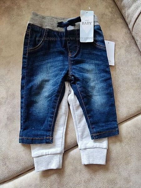Штаны с начёсом Reserved и Джинсы Mark Spencer на 6-9 мес