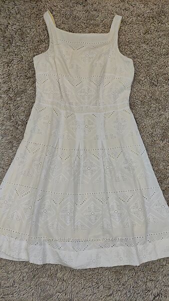 Фото 4-5 next шикарне біле плаття з вишивкою під низом жовта підкладка, р.10