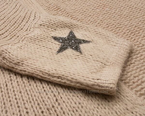 Необычный, заметный, в богемном стиле. Свободный, крупной вязки, очень мягкий и приятный на ощупь, на рукавах декор в виде крупных звезд из сверкающих страз. Незаменимая вещь, способная сделать эффектным любой скучный образ.