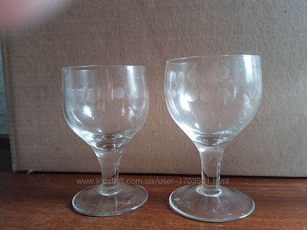 Фото 1,2,3,4. Хрусталь времён СССР.,90 мл. Резьба. В наличии 3 шт. Без дефектов. -- 34 грн/штФото 5,6. Есть 1шт. чуть отличается рисунком и поменьше. -- 24 грн