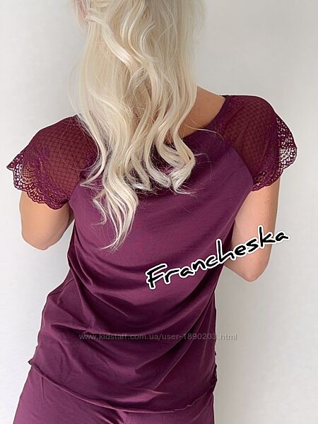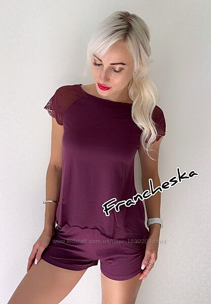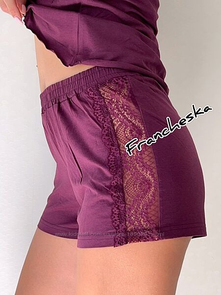 Подробное описание: Жіночий комплект з шортами для дому та сну ТМ Ellen бордовий з мереживом
