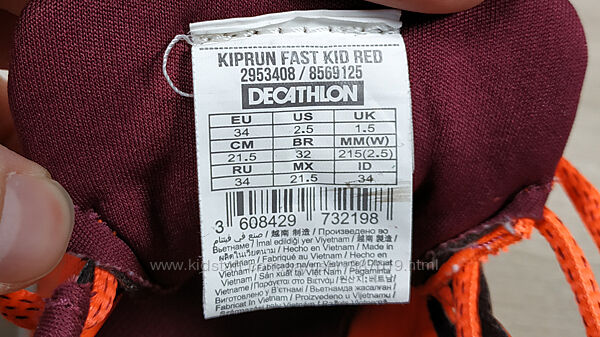Подробное описание: Легкі спортивні дитячі кросівки Kalenji, розмір 34