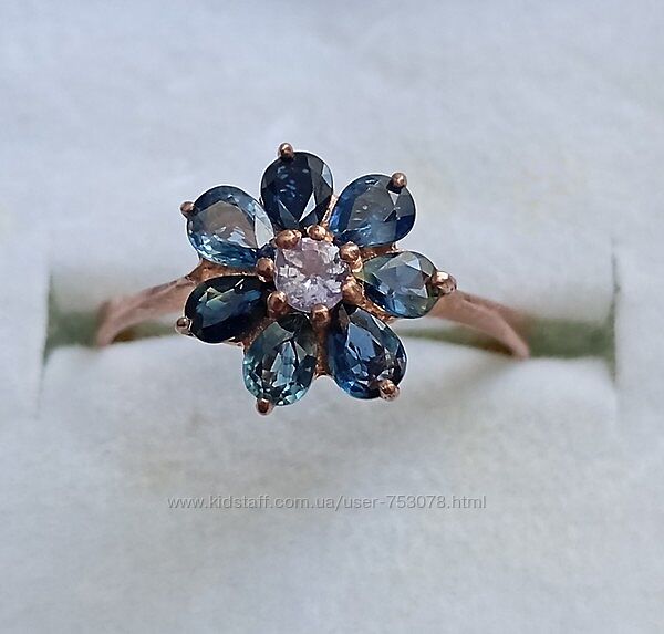 Оригинальное нежное колечко из разнотоновыми сапфирами в форме цветка в позолоте 14кт (есть проба)! Размер: 18 Диаметр: 56- мм Вес: 2 г Камни: сапфиры 7шт, танзанит 1 шт Размер камней: 4*3 (сапфиры) , танзанит 3 мм Производитель: Таиланд