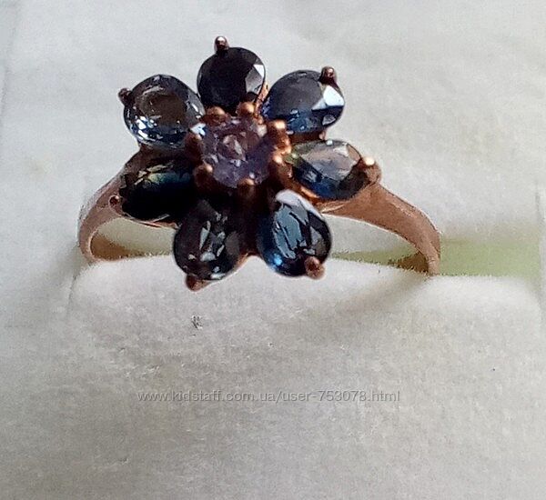 Кольцо с натуральными сапфирами, разнотоновые серебро, позолота р.18