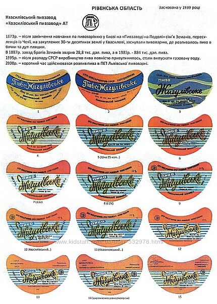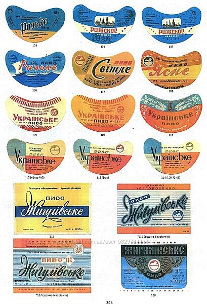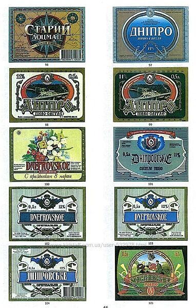 Каталоги содержат изображения пивных этикеток пивоваренных заводов Украины, которые были наклеены на стеклянных бутылках объемом 0,33 л, 0,4 л, 0,5 л за период 1960-2014 годов.