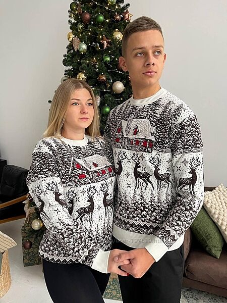 Подробное описание: Новорічний светр з оленями. Новогодний свитер мужской, женский с оленями.