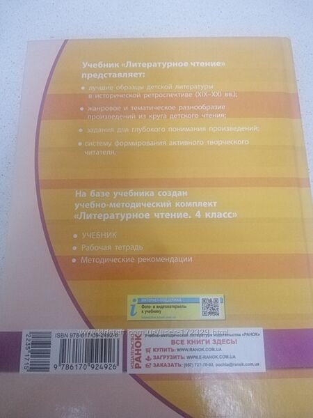 Увага! Підручник в ідеальному стані, але в середині є невеликі сліди від корректораПідручник Литературное чтение для 4 класса