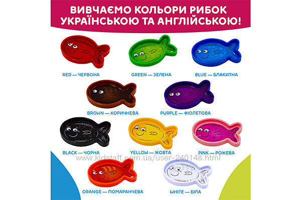 У дитини буде 3 спроби знайти правильну відповідь, а потім іграшка запропонує інше завдання, наприклад: «Мені потрібна зелена рибка.».
