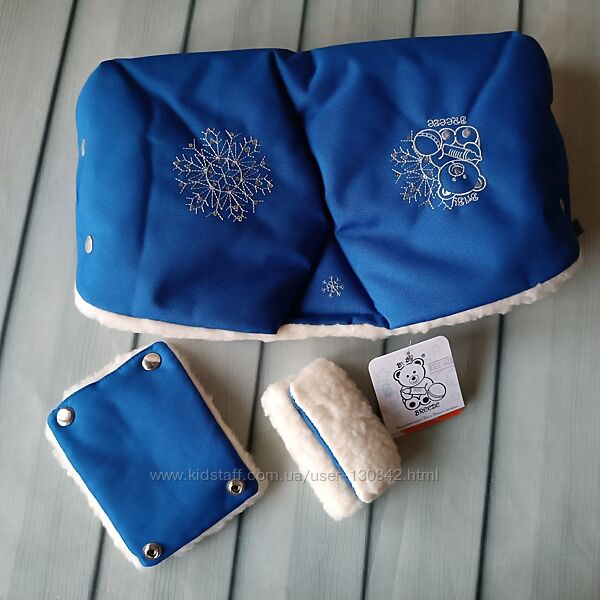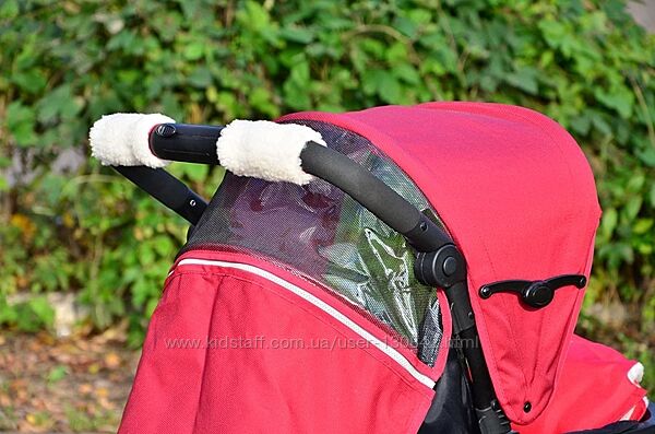 Муфта на овчине на ручку коляски с прихватками в комплектеРазные цвета