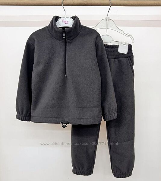 Костюм для дівчинки і хлопчика (джемпер з довгим рукавом на резинці, горловина стійка, попереду застібка блискавка, у низ вставлена куліска, яка має фіксацію + штани на широкій резинці, низ також резинка, з боків є кишені) підійде для дітей від року до 12-13 років.Пошитий із тканини фліс полар щільний, він безпечний, гігієнічний та гіпоалергенний