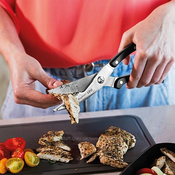 Будь то сирий, варений або смажений птах, ці ножиці з нержавіючої сталі незамінні для оброблення курки, індички, качки або гусака на дрібніші порції. Ковані леза збережуть свою гостроту для тривалого комфортного різання та з´єднані гвинтом, щоб їх можна було розібрати для легкого очищення.Переваги: