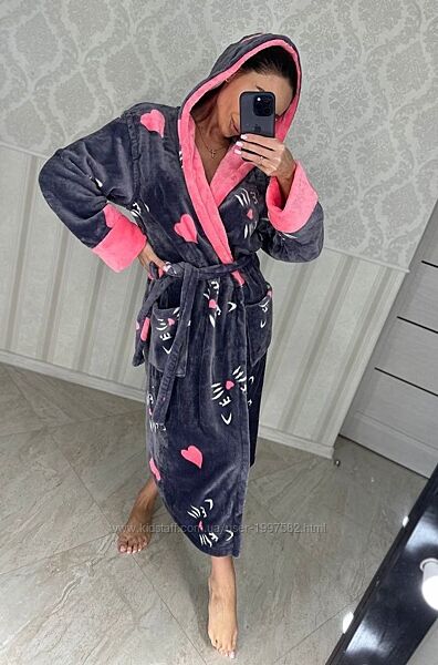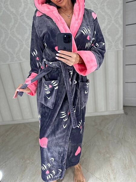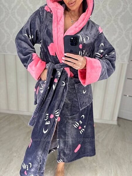 Розмір: універсал 42-46 за рахунок запаху, довгі підходять до 48 (під замовлення! халати з капюшоном хл(48-50) +50 грн, ххл (52-54) +70 грн!!!)