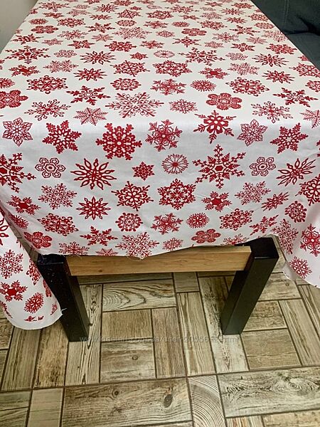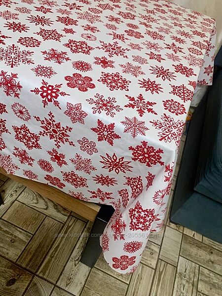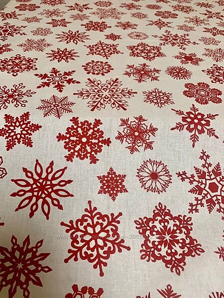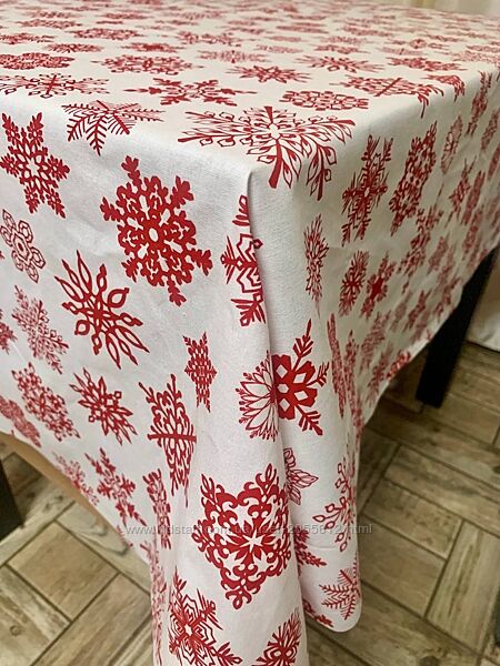 Скатертина біла у червоні зірочки - чудова прикраса вашого новорічного свята!Тканина ранфорс, натуральна. гарно переться, легко прасується.