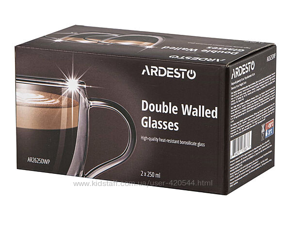Подробное описание: Чашки з подвійними стінками Ardesto, 250 мл набір 2 шт