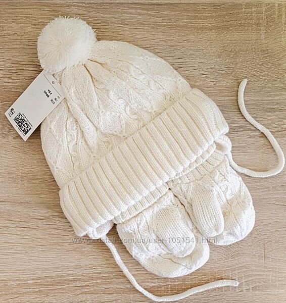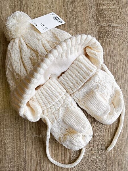 Теплий зимовий комплект шапка і варежки від H&M модель зима( еврозима) ,колір - біло-молочний ,шапка і варежки утеплені флісом .