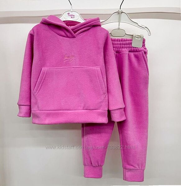 Костюм для дівчинки і хлопчика (джемпер з довгим рукавом під манжет, є капюшон, попереду нашита кишеня, декор вишивка + штани на широкій резинці, низ манжет, з боків є кишені), зручний і стильний і дуже теплий костюм, незамінна річ для прогулянок, підійде для дітей від року до 12-13 років.Пошит із синтетичної тканини фліс полар щільний, але він безпечний, гігієнічний та гіпоалергенний, тому це дає можливість виготовляти з неї одяг дл дітей, для людей-алергіків, дуже тепла тканина (фліс швидко нагрівається від температури тіла, а надалі добре її зберігає на належному рівні), не втрачає форму при багаторазовому пранні.