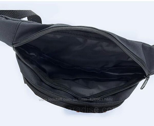 Має 2 кишені на блискавці, регульовану довжину ременя, надійний широкий карабін (застібка).