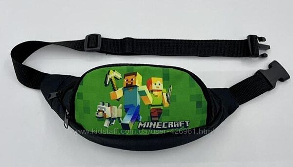 Чорно-зелена дитяча сумка бананка "Minecraft".Матеріал: високоякісний текстиль із принтом.