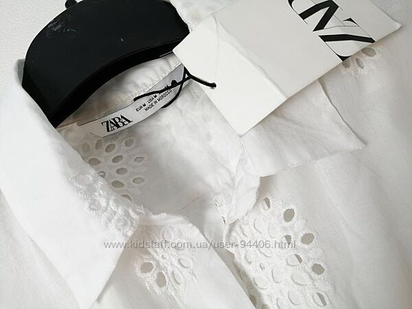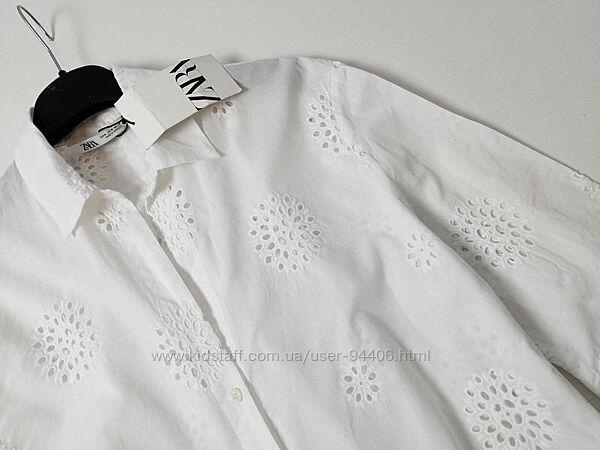 Белая свободная хлопковая рубашка в перфорацию Zara