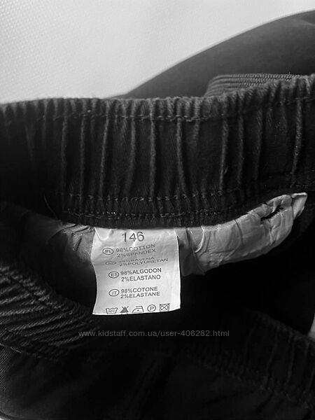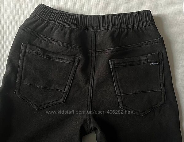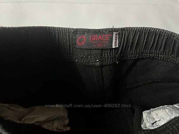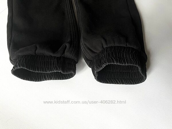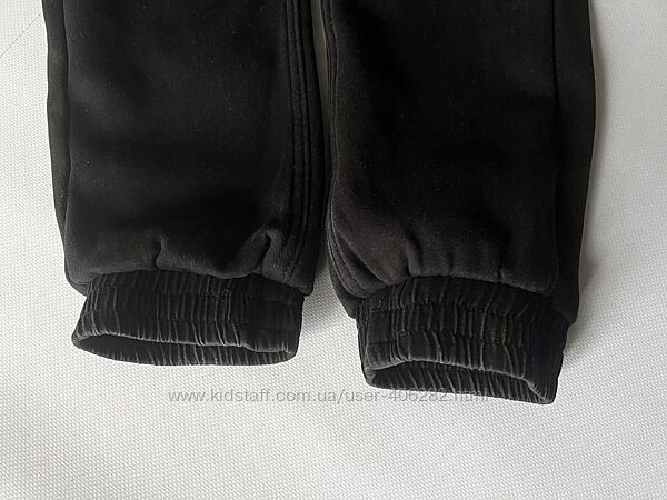 Джогери на флісі в розмірі 146 Тканина коттон, підкладка фліс Колір чорний, але не насичений В гарному стані, єдиний нюанс - трошки є потертості на швах, на фото видно