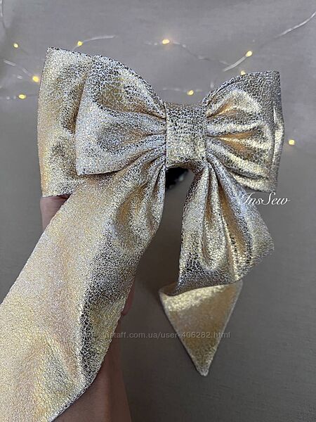 Золотий бантик✨ Тканина - стрейч кулір з золотим напиленням різної насиченості, має легкий ефект потертості ✨ Така прикраса буде справжньою родзинкою святкового образу Ідеально підходить для новорічних заходів, тематичних вечірок і будь яких урочистостей, де хочеться додати трохи сяйва✨