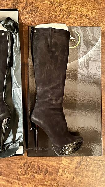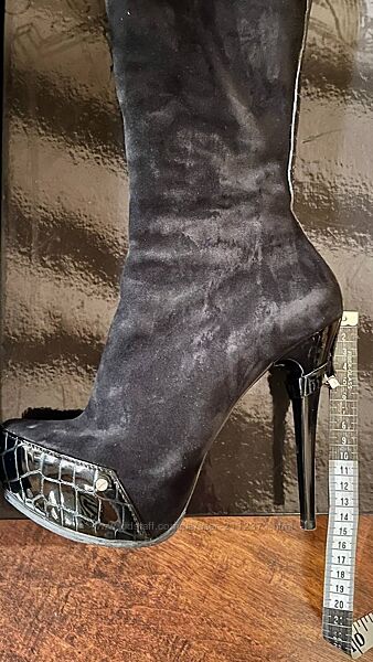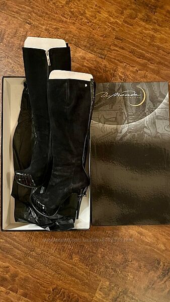 Женские демисезонные сапоги Du Monde в отличном состоянии почти не носила, установлена металлическая набойка на каблуках. Сапоги черного цвета выполнены из замшевой кожи, внутренний материал - натуральная кожа. Модель на молнии, объем голенища - 32см, высота платформы- 4 см, высота каблука - 12см. На узкую ножку.Другие объявления продавца