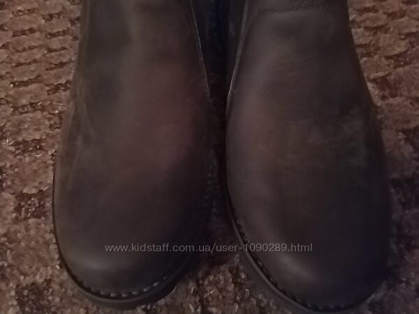 1-6 Timberland черевики ботінки, нові, шкіра натуральна, стильна зручна модель, дуже практична та зносостійка - витримує будь які погодні умови та безліч км. Колір коричневий, в деяких місцях штучно фабрично неоднотонний, за бажанням при чистці це можна прибрати та вирівняти колір, а також, при використанні спрею відтінок коричневого можна змінити до іншого бажаного, шкіра верху теж це дозволяє. Розмір 38 європейський, 5.5 сша, устілка 24.2-24.3. Їх практично не можна зностити. Перевірено на практиці.