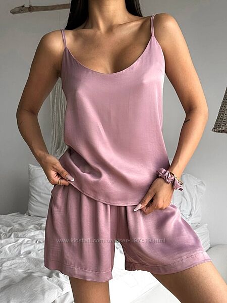 Пижама женская, домашний костюм. Комплект майка и шортики люкс сатин Турция