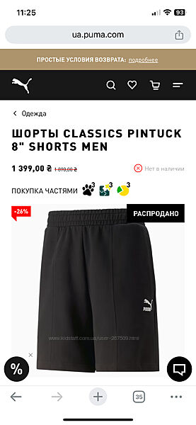 шорты Puma р.SClassics Pintuck 8" Shorts Men