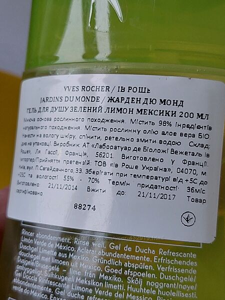 Гель для душа зелений лимон 200 мл. Ів Роше yves rocher