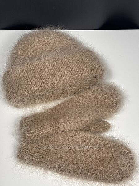 Женский зимний комплект шапка и варежки