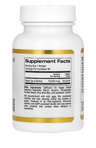 Подробное описание: Биотин Сalifornia Gold, 10,000. 90 капсул
