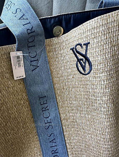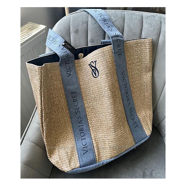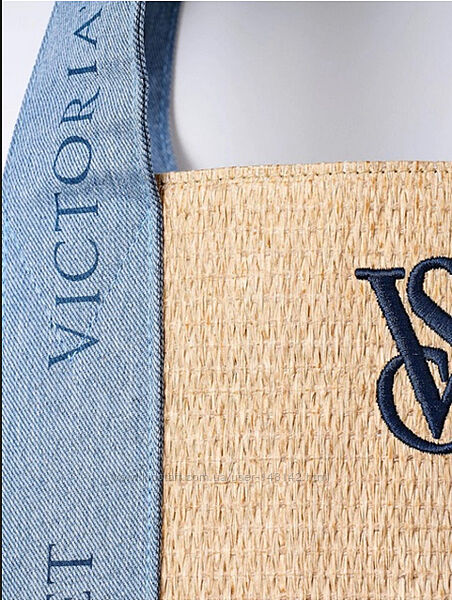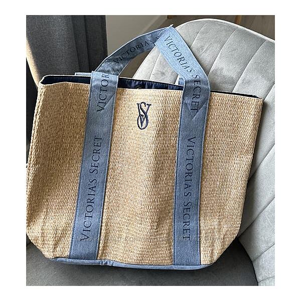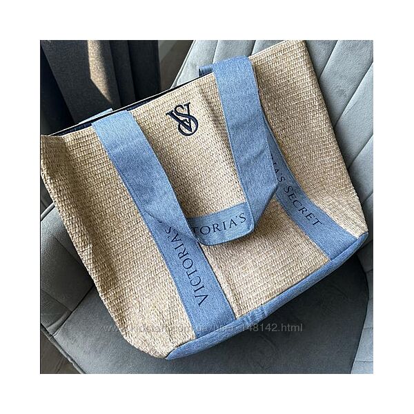 Сумка Victoria´s Secret Beach Tote Bag Pool Straw Raffia Woven Beige Blue Logo LargeСтильная сумка Виктория Сикрет – очень вместительный шоппер