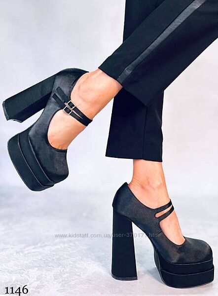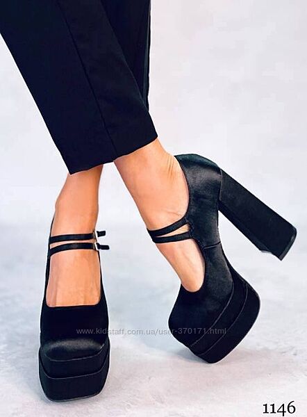 Подробное описание: Ефектні атласні туфлі на платформі з каблуком