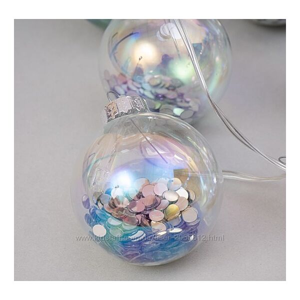 Гірлянда "Срібло" довжиною 88 см складається з 10 прозорих кульок діаметром 5 см, оснащених різнокольоровими LED-ліхтариками. Всередині кульок знаходиться блискуче срібне конфеті. Енергоощадні LED-лампочки забезпечують довговічність та безпеку, дозволяючи насолоджуватися казковим сяйвом протягом усього сезону.Довжина: 88 см. Тип живлення: USB.