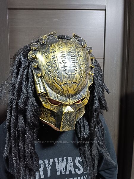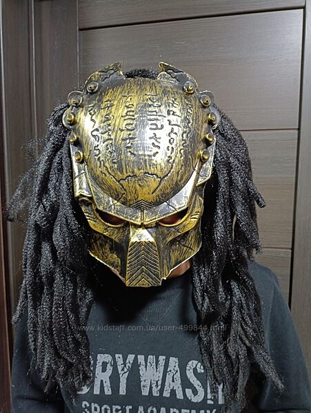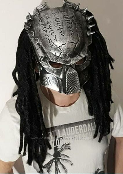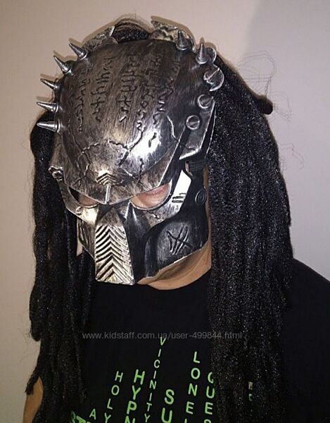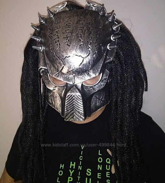 Маска Хижака з дредами, карнавальний комплект пластмасова маска хижака сірого кольору з кріпленням на текстильній гумці розмір 26х19 сантиметрів і перука дреди чорного кольору на сітчастої основі універсального розміру довжина 55 см.Ціна 699 грн. Торгу немає!