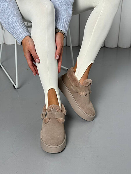 Подробное описание: Сліпони жіночі замшеві бежевого кольору зимові
