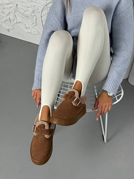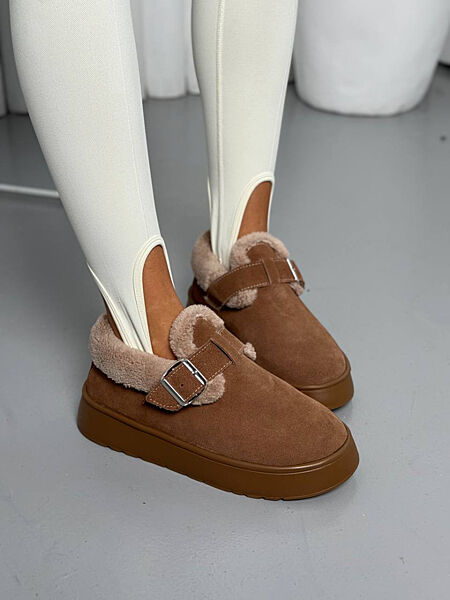 Подробное описание: Сліпони жіночі замшеві рудого кольору зимові