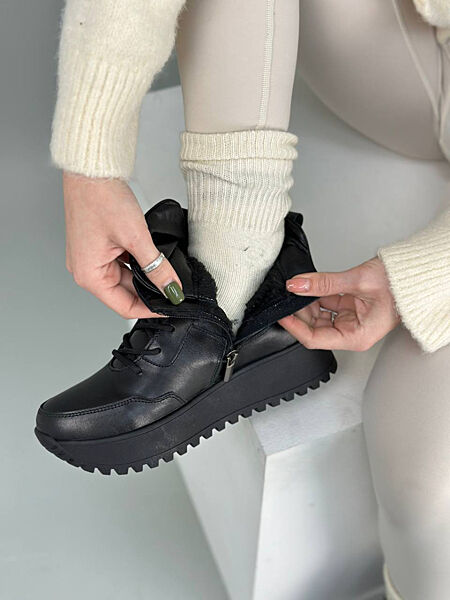 Подробное описание: Кросівки жіночі шкіряні чорного кольору зимові
