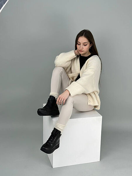 Сезон: зима Розміри: 36-41 Колір: чорний Матеріал верху: натуральна шкіра Всередині: напівшерсть Матеріал підошви: поліуретан Висота підошви: 3,5-4,5см Висота без підошви: 11см Обхват вверху: 28см + шнурівка Виробник: Україна 36-23,5см 37-24см 38-24,5см 39-25см 40-25,5-26см 41-26,5см, на середню ногу