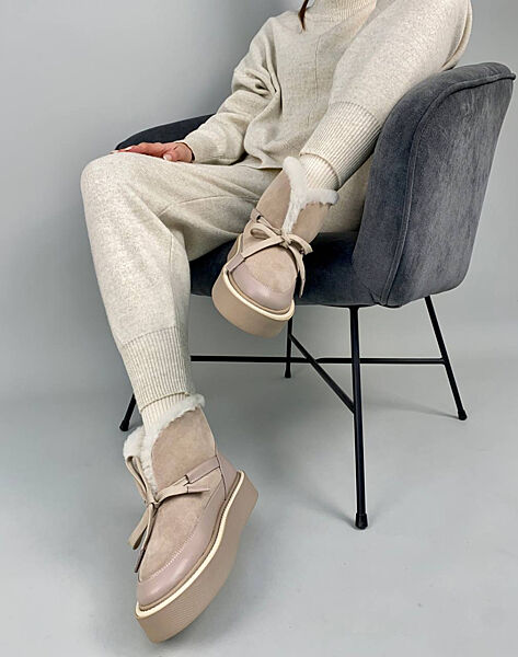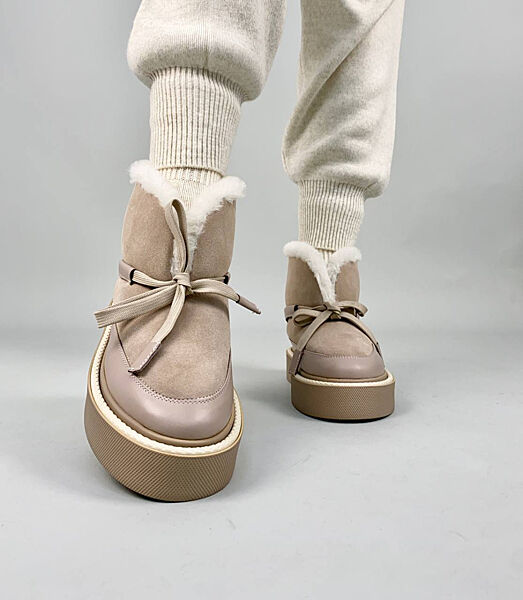 Подробное описание: Уггі жіночі замшеві бежеві зі шкіряною вставкою