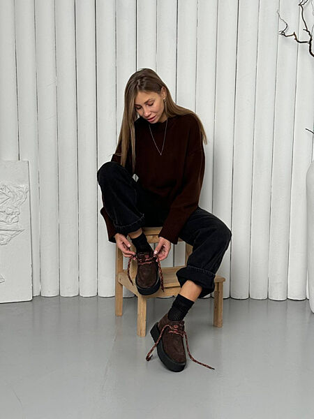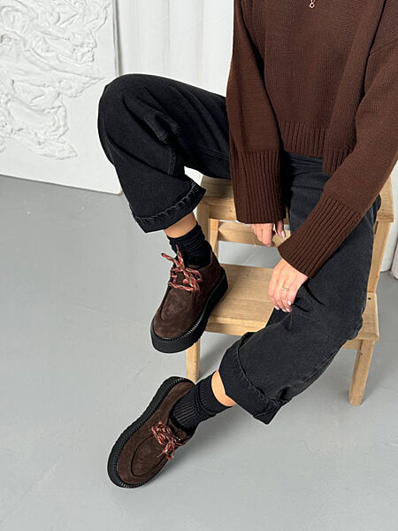 Подробное описание: Лофери жіночі замшеві шоколадного кольору зимові